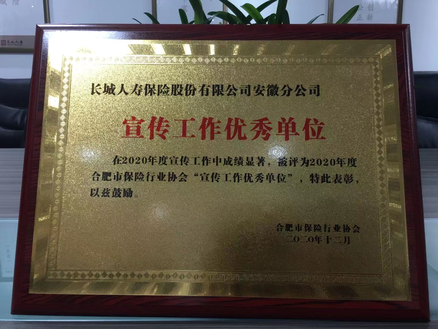 12月22日,在合肥市保险行业协会主办的2020年宣传工作会议暨表彰大会上,安徽分公司获评“2020年度信息宣传工作优秀单位”。