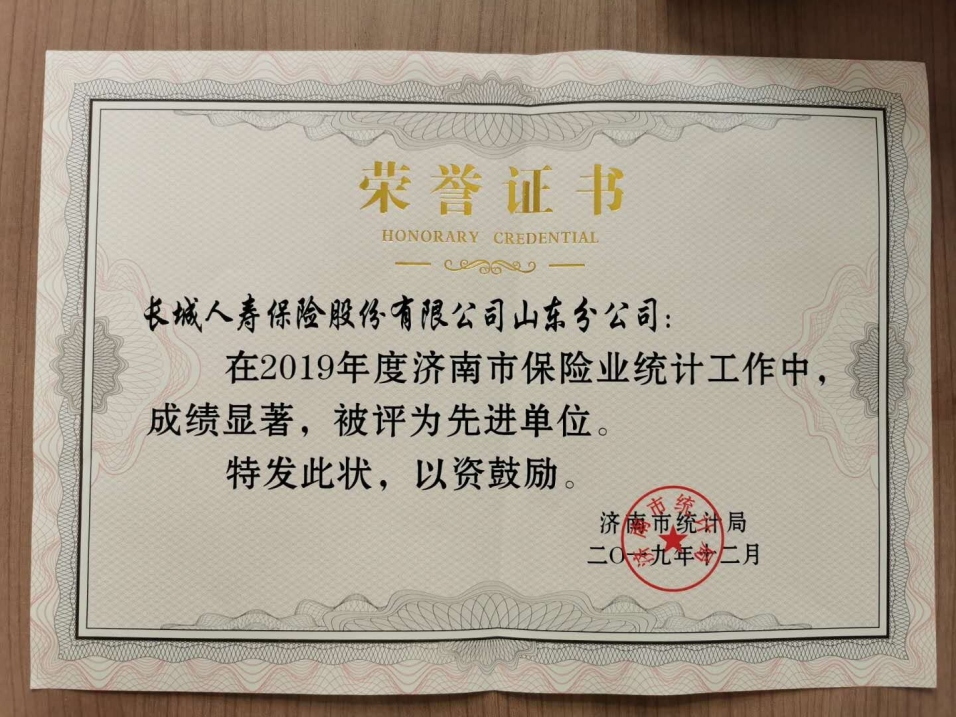 山东分公司荣获2019年度济南市保险业统计工作先进单位