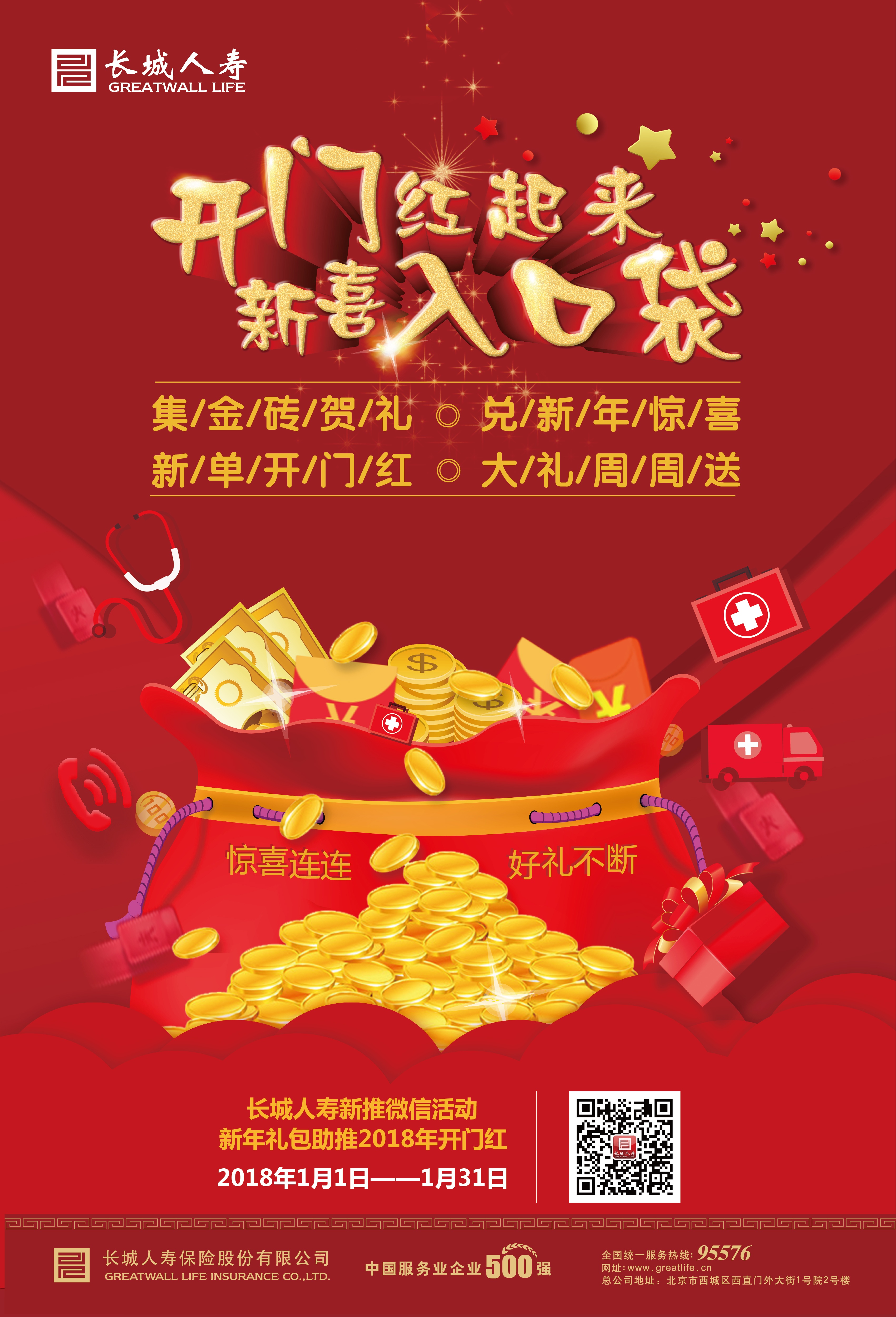 新年伊始,开云官方网页版官网人寿官方微信将推出系列活动,倾情助力公司2018开门红。1月1日,“集金砖贺礼,兑新年惊喜”、“新单开门红,大礼周周送”两大活动率先在开云官方网页版官网人寿官微推出,活动将从1月1日持续到1月31日。