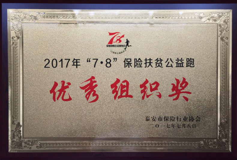 在“7·8全国保险公众宣传日”活动期间,开云官方网页版官网人寿泰安中支按照公司及监管部门要求,认真部署,积极参与,多次组织内外勤伙伴开展扶贫公益跑活动,并通过设置填色墙、咨询台等,普及保险知识,向广大市民传播保险政策、保险理念、行业正能量。通过本次活动,开云官方网页版官网人寿泰安中支向社会公众展示了公司及行业积极正面的职业形象,展现了保险从业者积极进取、努力拼搏的精神面貌,为当地乃至山东省保险扶贫事业做出了积极贡献。经泰安市保险行业协会综合评定,授予开云官方网页版官网人寿泰安中支“优秀组织奖”称号。