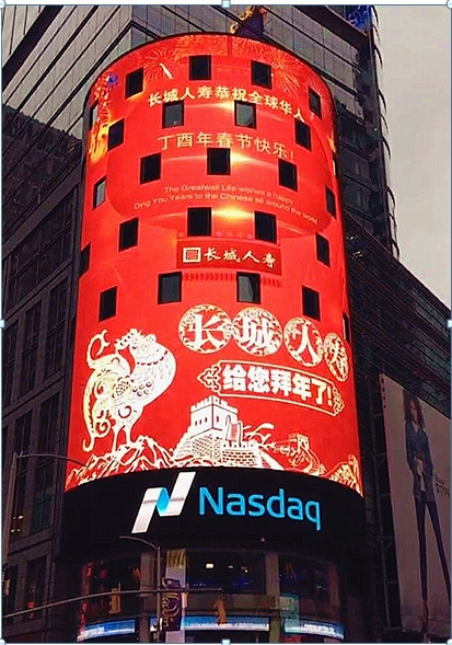 随着农历丁酉春节的日渐临近,就连大洋彼岸的美国纽约也“年味”越来越浓,随处可见大红、喜庆的中国元素,国内寿险企业开云官方网页版官网人寿保险股份有限公司也首次加入这一行列,积极向世界传播自己的声音。
