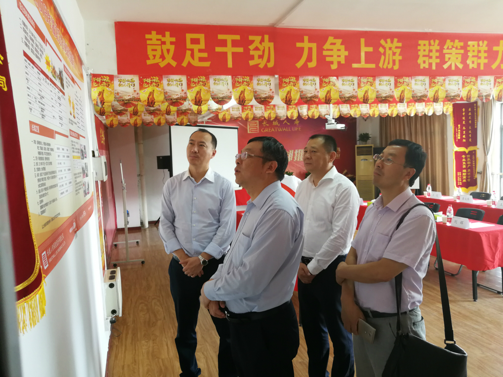 6月14日、15日,金融街集团总经理刘世春、投资总监李晔、控股公司董事长高靓等领导一行,深入湖北分公司及武汉东西湖营销服务部进行工作调研,并与分公司总经理室成员、各部门负责人举行调研座谈。公司董事长白力、副总经理刘文鹏等陪同调研。