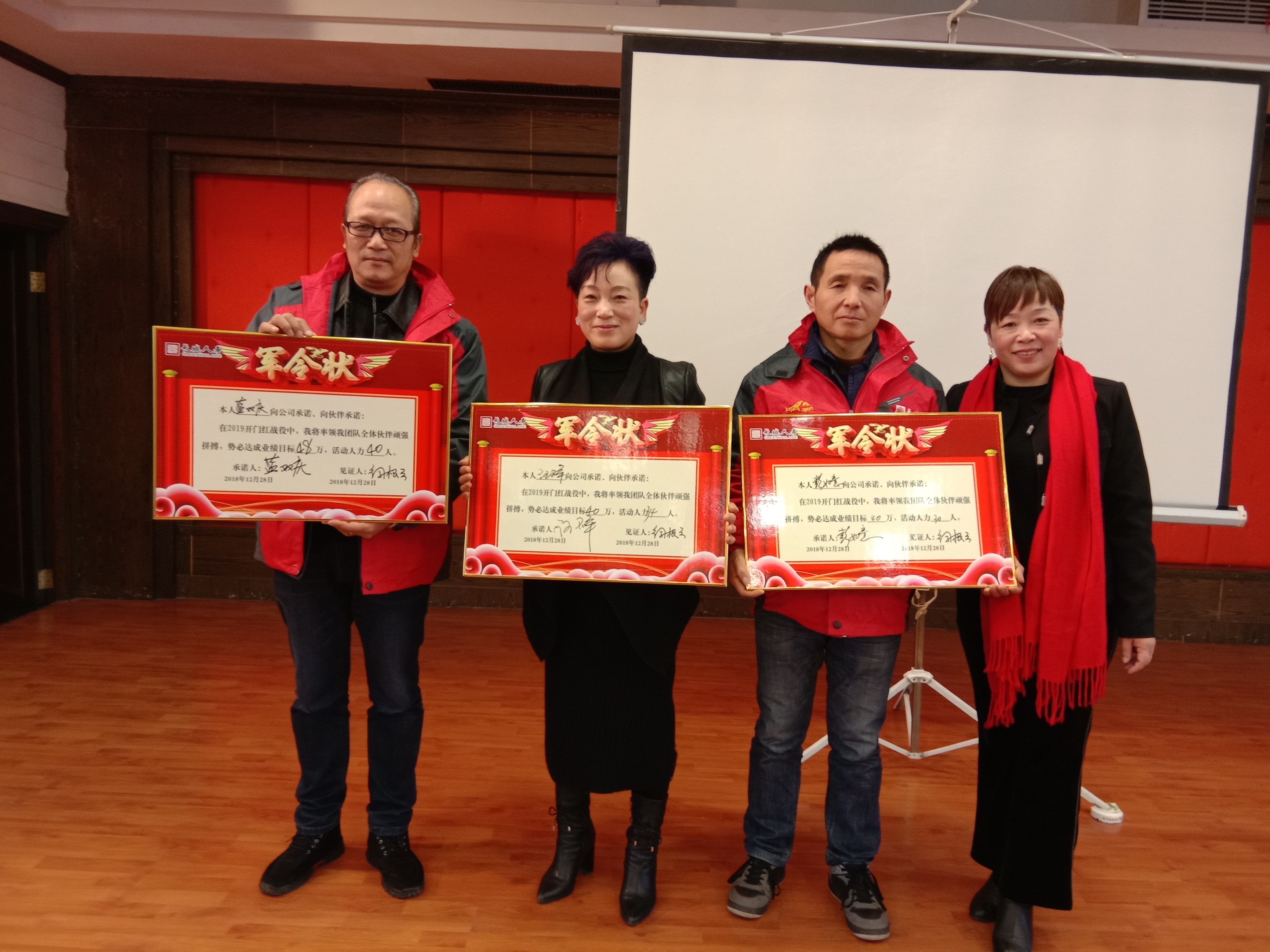 最后,安庆中支的伙伴们用签订军令状、签订挑战书、抢订金银牌的方式表达了她们对2019开门红必红的信心和决心。